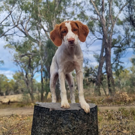 Haze is my little keeper, my first owner bred and breeder handled Brittany, and I adore every bit of her cheeky spirit. She is incredibly smart, quick on her feet, and always ready to learn. She is already excelling in heelwork, recall, tricks, flatwork, and of course, being a devoted cuddle bug. An orange and white girl with a half tail and a whole lot of attitude, she loves tug toys, anything that moves, and has plenty of back chat to share.